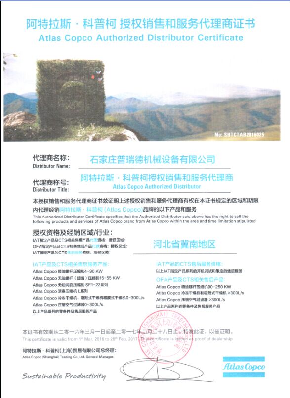 空气压缩机代理证书2016
