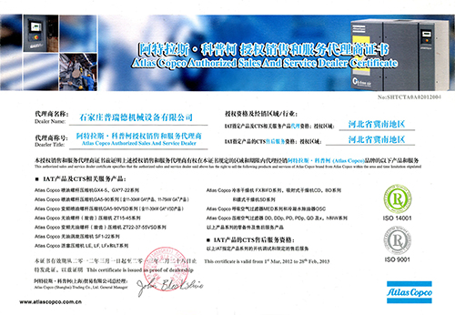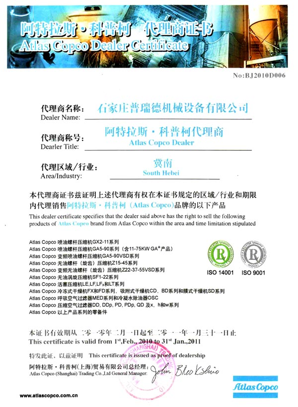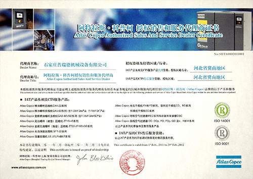 阿特拉斯·科普柯授权证书2010